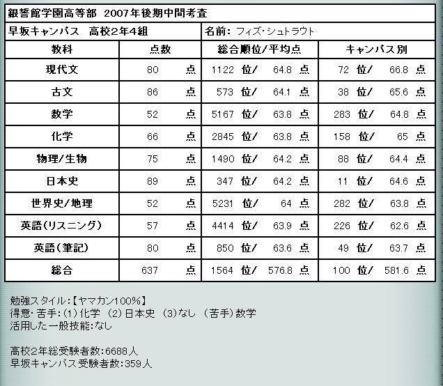 俺は…ま、そこそこか。日本史が飛びぬけてるけど、それ以外は普通だな